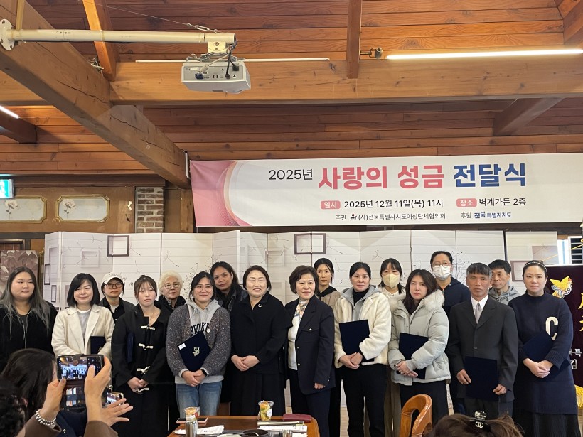 이전글 다음글 목록 본문 2025년 사랑의 성금 전달식 일시: 2025.12.11(목) 11:00장소: 벽계가든내용: 기념식, 성금 전달식, 행복한 가정상 시상 등 댓글목록 등록된 댓글이 없습니다. 이전글 다음글 목록